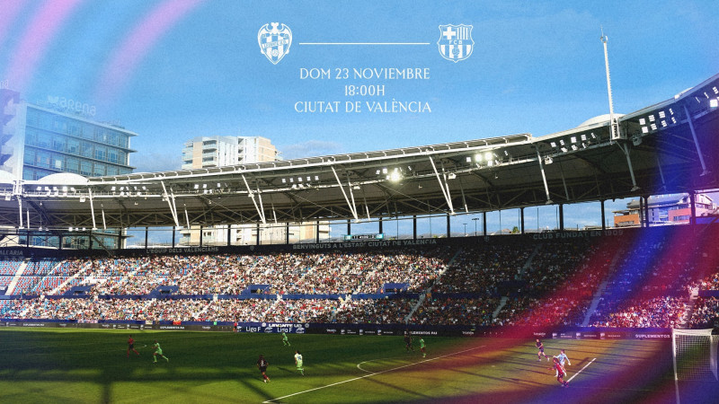 El estadio del conjunto granota recibirá al FC Barcelona el domingo 23 de noviembre a las 18:00h. El Levante UD buscará su primera victoria de la temporada, mientras que las azulgranas, que solo han perdido un partido este curso en Liga F Moeve, intentarán seguir con su buena racha en la competición liguera.