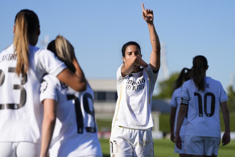 Primer triunfo del curso para el Real Madrid en Liga F Moeve. Las de Pau Quesada arrancaron mejor, intentando imponerse sobre el terreno de juego de un Di Stéfano que rozó los 2.000 espectadores. La primera ocasión del encuentro estuvo en la cabeza de Toletti. La medio francesa se animó con un potente testarazo tras un saque de esquina, pero la zaga del Madrid CFF sacó el esférico desde prácticamente la misma línea de gol. En el minuto 17 llegó el premio a la insistencia blanca. Silvia Cristóbal encontró a Eva Navarro, La murciana encaró a su defensora, y se sacó un centro medido dentro del área. Alba Redondo entró con todo para mandar la pelota a la mismísima escuadra con un cabezazo. La delantera, que fue la MVP del partido, encaminaba el partido para las locales.