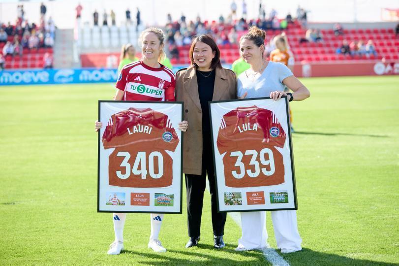 Antes del inicio del choque, Lauri Requena recibió una camiseta por sus 340 partidos con el Granada, la que más en la historia de la sección, y Lula otra por sus 339 encuentros. La igualdad marcó el inicio de partido del derbi andaluz. La primera ocasión del choque estuvo en un cabezazo de Jujuba que se perdió desviado. A los quince minutos de juego llegó el primer tanto del duelo. Un envío de Isa Álvarez desde la esquina sorprendió a Laura Sánchez, que no salió con seguridad, y esa indecisión de la guardameta local la aprovechó Andrea Álvarez para rematar la pelota desde el segundo palo. Rosa Márquez llevaba la batuta del centro del campo visitante, mientras que las de Irene Ferreras buscaban a Sonya Keefe en punta. Precisamente, la colegiada revisó una posible expulsión de la delantera chilena.
