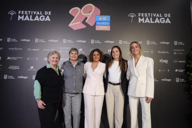 Posteriormente, la presidenta de Liga F, las participantes en la mesa redonda y Lauri Requena, capitana del Granada CF, que no quiso perderse la cita, asistieron al preestreno de la película ‘Pioneras, solo querían jugar’, celebrado en el Teatro Cervantes de Málaga, una de las proyecciones más destacados de esta 29 edición del festival.