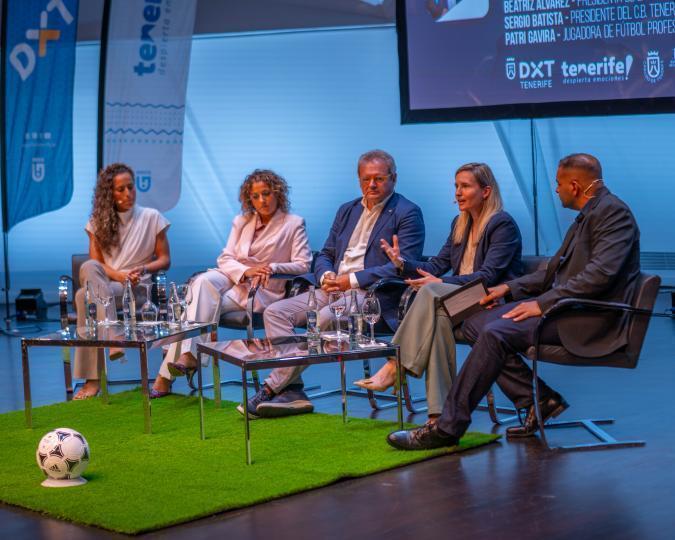 Posteriormente, Beatriz Álvarez participó en el II Congreso Internacional de Derecho Deportivo, organizado por Tania Tejeira, CEO de CIDD, que tuvo lugar en el Auditorio de Tenerife y contó en su inauguración con la presencia de José Manuel Rodríguez Uribes, presidente del Consejo Superior de Deportes y José Juan Arencibia, presidente de la Federación Canaria de Fútbol. La presidenta de Liga F tomó parte en la mesa redonda: “Fútbol femenino, mujer y deporte” junto a Sergio Batista, Patri Gavira, futbolista del Costa Adeje Tenerife, y Reyes Belver, directora de Fútbol Femenino de la Real Federación Española de Fútbol. Durante la charla se puso en valor los avances conseguidos tras la profesionalización del fútbol femenino.