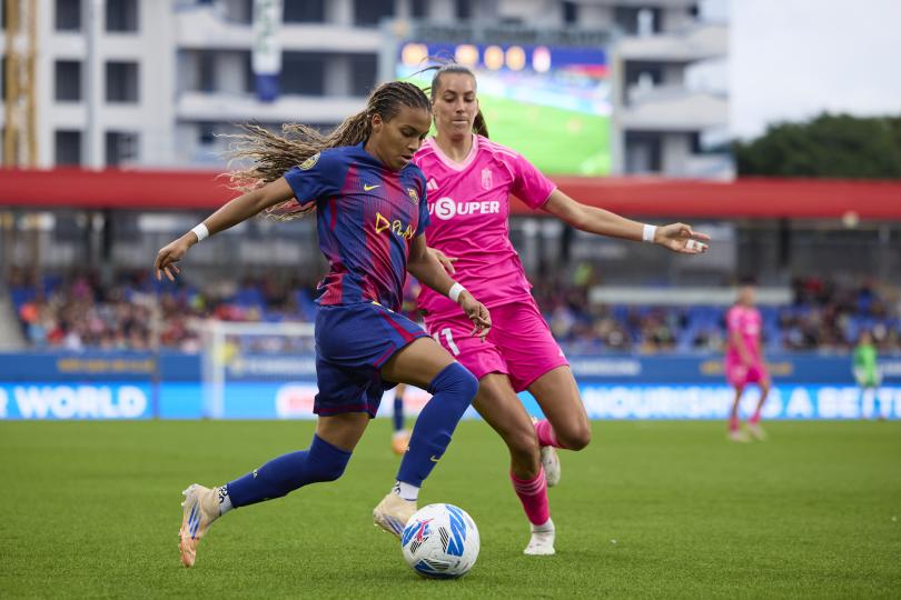 El FC Barcelona se impuso por 2-0 al Granada CF en el Johan Cruyff. Claudia Pina y Kika Nazareth marcaron los dos tantos del encuentro. La MVP del choque fue Vicky López, que repartió dos asistencias. Las azulgranas se marchan al parón de selecciones como líderes de Liga F Moeve con pleno de victorias.