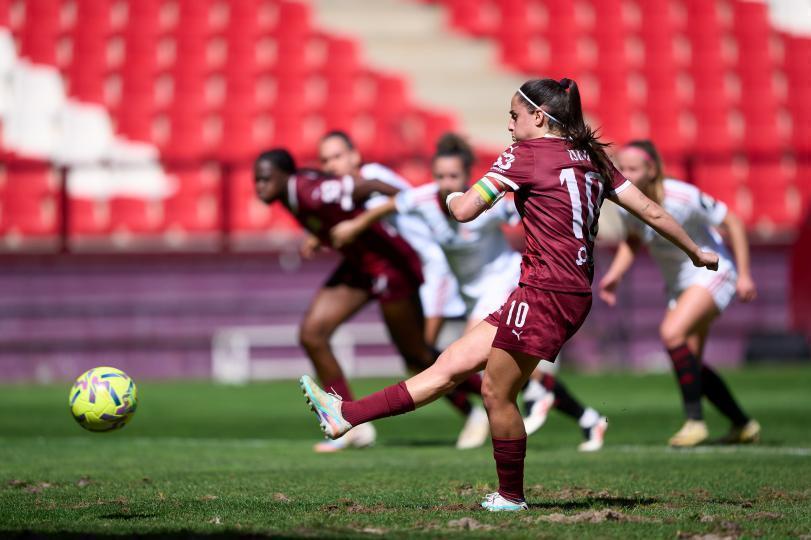 En el minuto 40, Débora García robó una pelota en campo rival, y encontró a Millaray Cortés. La centrocampista chilena no se pensó dos veces, y se sacó un potente derechazo que se coló por la mismísima escuadra para hacer imposible la estirada de Miralles, que vio como la pelota se colaba directamente al fondo de la red. Cuando parecía que el duelo iba a terminar en tablas al descanso, un centro de Justina Morcillo le cayó a Isina, que controló el cuero, y recibió la zancadilla de Fatou Kanteh. La colegiada pitó la pena máxima, y la delantera asturiana, que fue la MVP del partido, puso el 2-1 desde los once metros. Esther Sullastres adivinó el lanzamiento, pero no pudo hacer nada para quedarse con el balón. En la segunda mitad, las de David Losada buscaron encontrar el empate y superar a la zaga del club vinotinto.