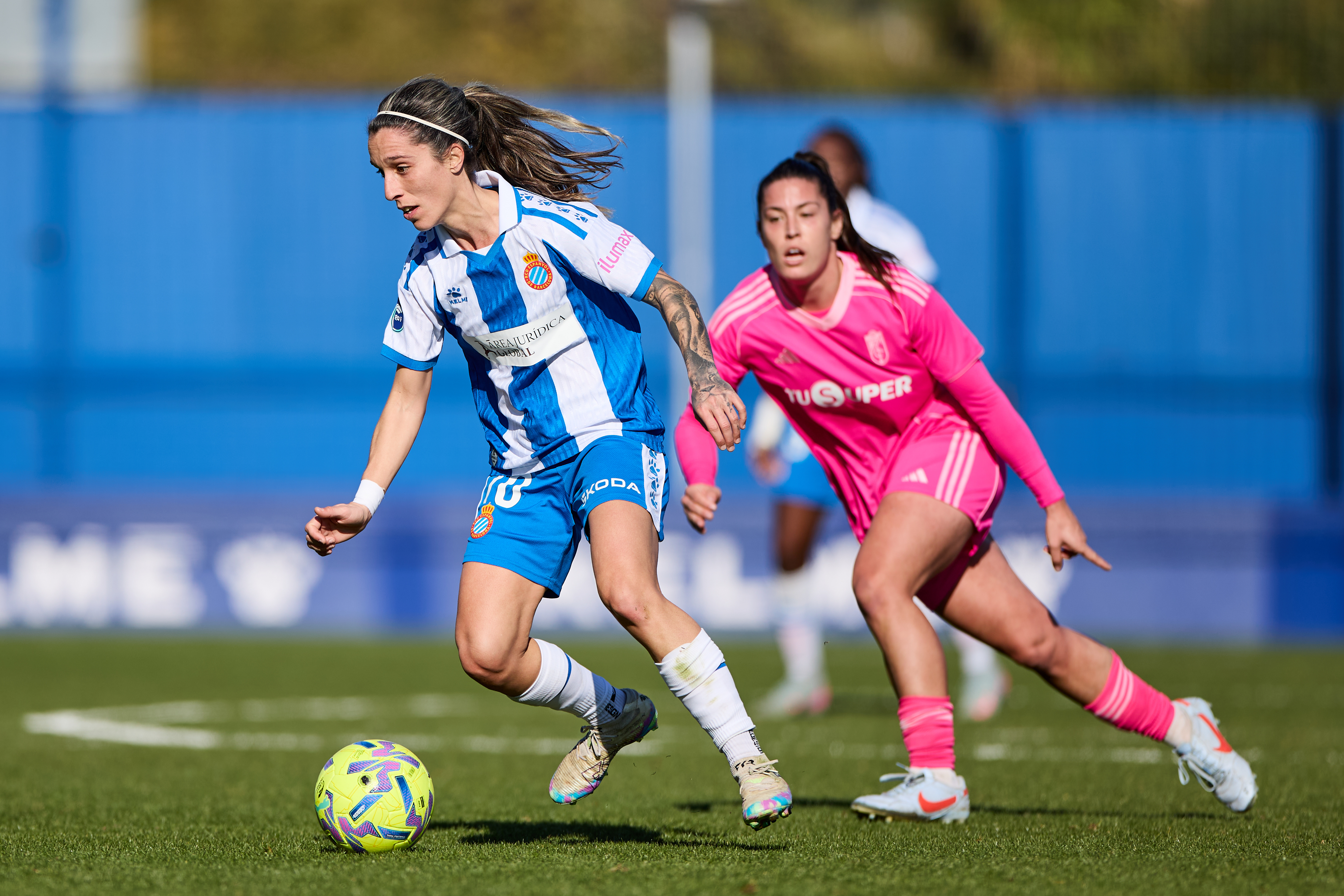 Justo antes del descanso, Cristina Baudet probó fortuna con un centro-chut que sacó la defensa del conjunto nazarí. La última de la primera parte también fue para la mediapunta local, pero su disparo lo sacó Chika Hirao, que mandó la pelota directamente a saque de esquina. Ambos equipos se marcharon al descanso con el resultado gafas: 0-0. Tras el paso por vestuarios, el RCD Espanyol intentó seguir con el control del encuentro con la entrada de Ainoa Campo en la medular para reforzar el centro del campo. Laura Pérez se animó en el ataque visitante, pero Lucía Vallejo se mostró providencial para mandar la pelota a saque de esquina. Pasada la hora de partido, Ariadna Mingueza mandó la pelota al fondo de la red con un potente disparo desde dentro del área tras cazar un balón suelto.