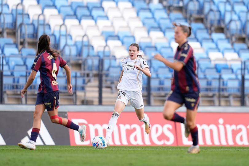 El conjunto blanco ganó por 4-0 al Levante UD en el Di Stéfano. Pau Comendador, Sara Holmgaard, Alba Redondo y Rocío Gálvez marcaron los cuatro tantos del encuentro. La MVP del choque fue Lotte Keukelaar, que estrenó titular y repartió una asistencia. Las granotas son colistas con apenas solo un punto.
