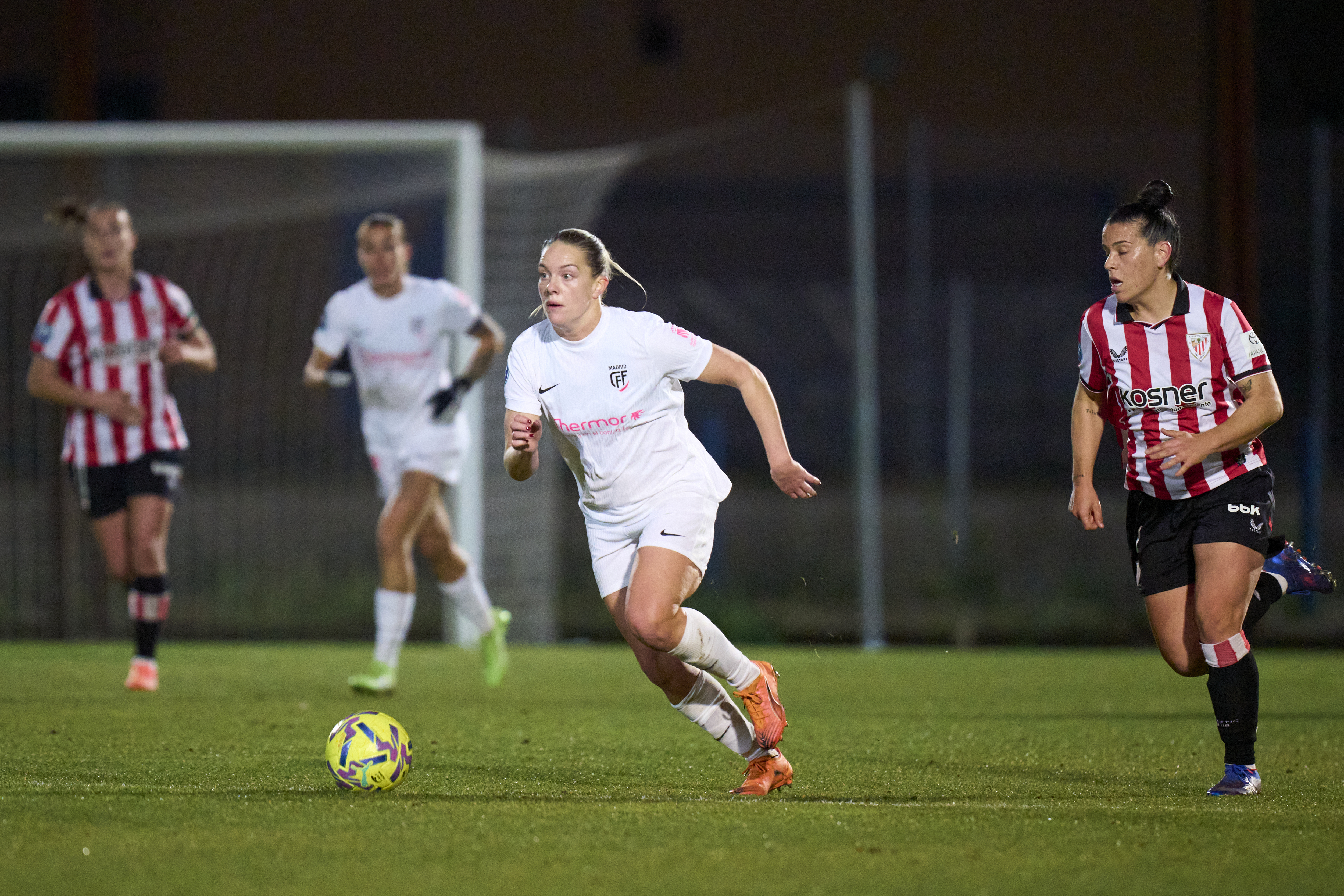 El primer aviso fue para Daniela Agote, que se sacó un remate desde dentro del área que se estrelló en el palo. Tan solo unos minutos después, y antes de llegar al descanso, Elene Gurtubay se adelantó a la zaga, para, y con prácticamente sin ángulo, sorprender a Paola Ulloa, que dudó en la salida, con un chut directamente al palo corto. Tras el paso por vestuarios, Clara Pinedo entró al terreno de juego. El Madrid CFF buscó generar peligro durante el segundo tiempo intentando aprovechar la velocidad de Kamilla Melgard, pero sin lograr superar a un equipo bilbaíno muy bien plantado atrás. A la media hora de juego, Javier Aguado movió el banquillo con un triple cambio: Marina Rivas, Allegra Poljak y Bárbara López ingresaron al verde. Las locales se salvaron del que hubiera sido el segundo tanto.