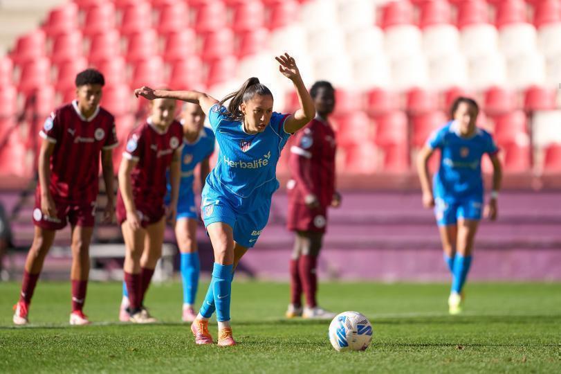 Las rojiblancas vencieron al DUX Logroño (0-5) en el estadio de Las Gaunas. Luany, con un doblete, uno de ellos de penalti, fue la MVP del choque. Fiamma, también desde los once metros, Rosa Otermín y Júlia Bartel marcaron los otros tres tantos de las madrileñas. La expulsión de Rebeca condicionó el duelo.