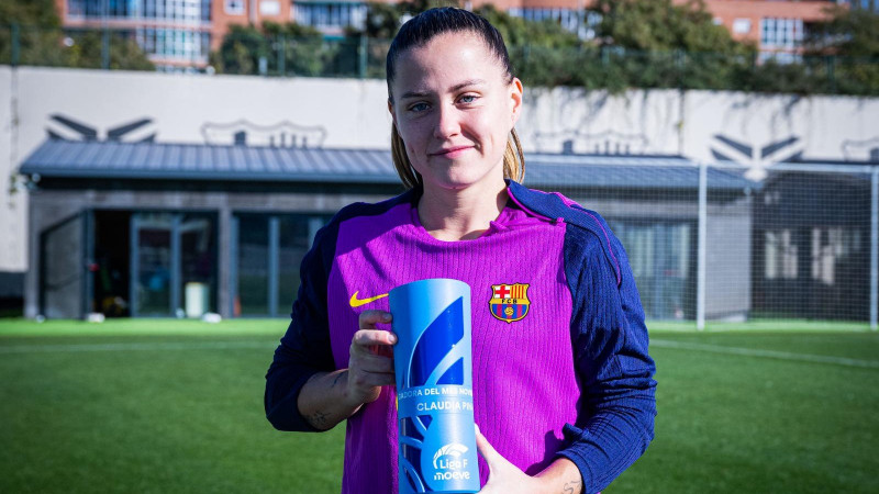 Este lunes 8 de diciembre se ha desvelado la ganadora del ‘Player of the month’ de noviembre en Liga F Moeve, otorgado a la futbolista del FC Barcelona, Claudia Pina. La atacante, que fue clave para que España ganara la Nations League, ha disputado los cuatro encuentros de este mes marcando 2 goles y repartie...
